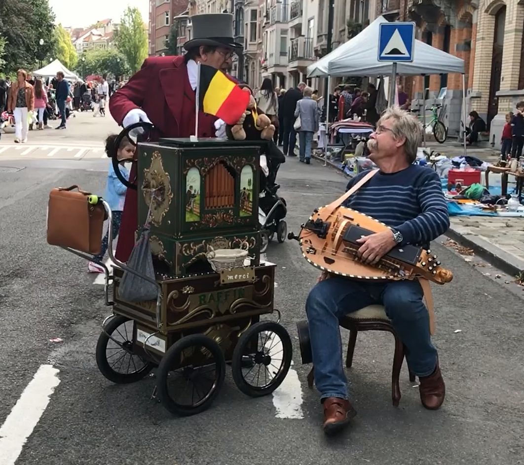 Et afin de tourner dans toutes les tonalités voici ma rencontre avec Didier Bellens (à l'occasion de la brocante de ma rue). Lui par contre il joue en fa majeur mais ce n'est toujours pas compatible avec ma vielle en sol: N'empêche: nous avons joué un petit tour ensemble, voir la vidéo et les photos ici: