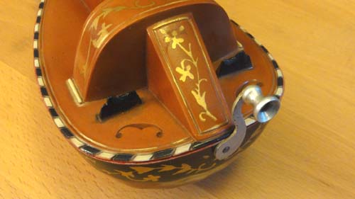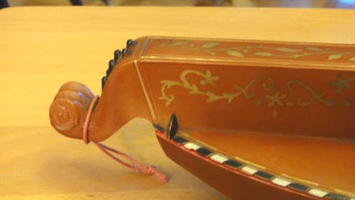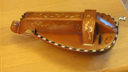 Vielle bateau prête à joue. Ecoutez ce bel instrument invitant à une bourrée traditionelle à 3 temps (La Mouroliade) en cliquant sur la photo
