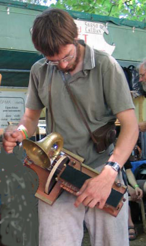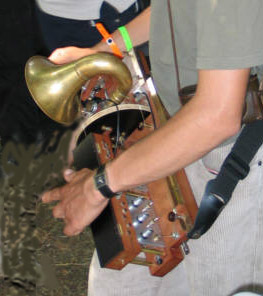 Premiers essais d'amplification de vielles: le chevalet des chanterelles a été adapté pour transmettre les vibrations sur un petit cône en métal lui-même formant la base d'une trompette. Il paraîtrait que les résultats ne sont pas fameux, sans compter que l'instrument devient difficile à manier.
