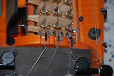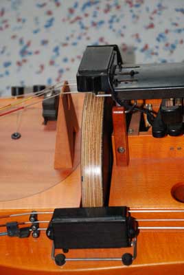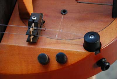 Voici quelques photos de cet étonnant instrument, plein d'autres astuces. Le son dépend bien entendu de l'amplification du signal des capteurs et peut être varier au moyen d'un égalisateur. Pour écouter, voici 2 exemples: cliquer ici et ici