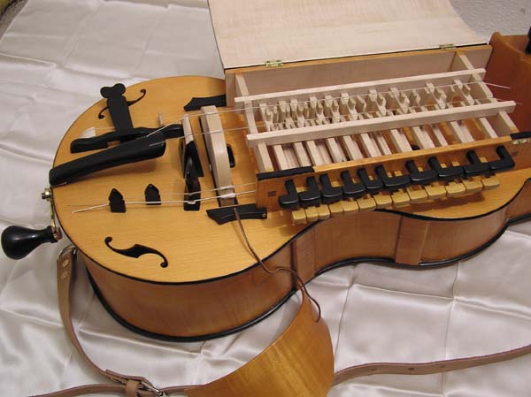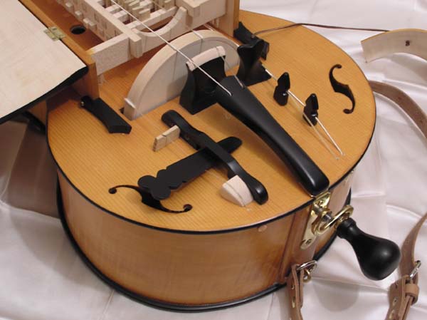 et lourde, petite roue par rapport au corps de la vielle, nombre de cordes réduit