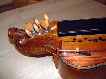 Pour des raisons de comodité d'accordage, cette vielle est equipée