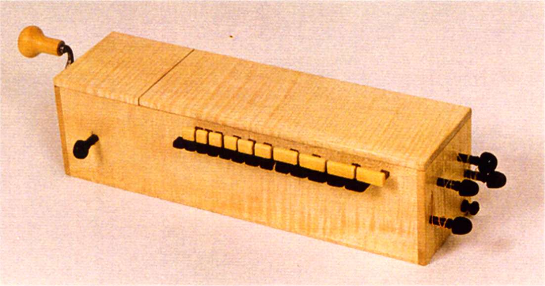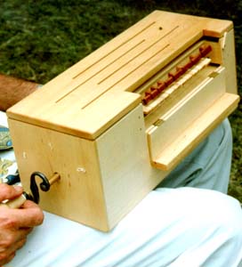 dans le corps de la vielle. Elle se joue avec le couvercle ouvert pour amplifier le son. Cet instrument est