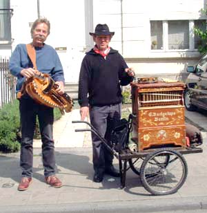 Autre rencontre avec un orgue de barbarie (qui a confirmé les problemes de tonalités entre les deux instruments): ici avec Dieter Hamacher, joueur professionnel d'orgue de barbarie de la région de Cologne (Allemagne). Si, si c'est une profession, et il parait qu'on gagne mieux sa vie qu'en jouant de la vielle...