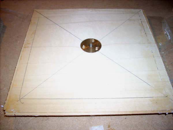 Une fois une surface ainsi réalisée, une pièce en laiton est vissée au milieu et le bois est percé (à la machine) perpendiculairement, c.à.d. dans le sens de l'axe de la roue.